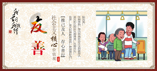友善,就是友愛和善,重友誼求和諧、存真善講愛心。以團(tuán)結(jié)互助為榮,以損人利己為恥,在社會(huì)發(fā)展轉(zhuǎn)型的今天,傳統(tǒng)“熟人社會(huì)”的籬笆圈子早已打破,“陌生同道”交往格局業(yè)已形成。從這個(gè)意義上講,“友善”囊括許多為我們這個(gè)時(shí)代所迫切需要的道德規(guī)范和理性心態(tài)。如,理性平和、包容多元、尊重差異、扶危濟(jì)困、見義勇為、自尊自信、積極向上、維護(hù)和諧,等等。